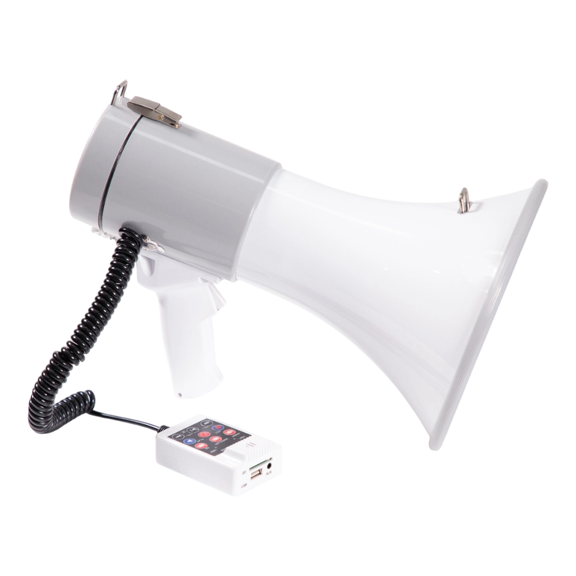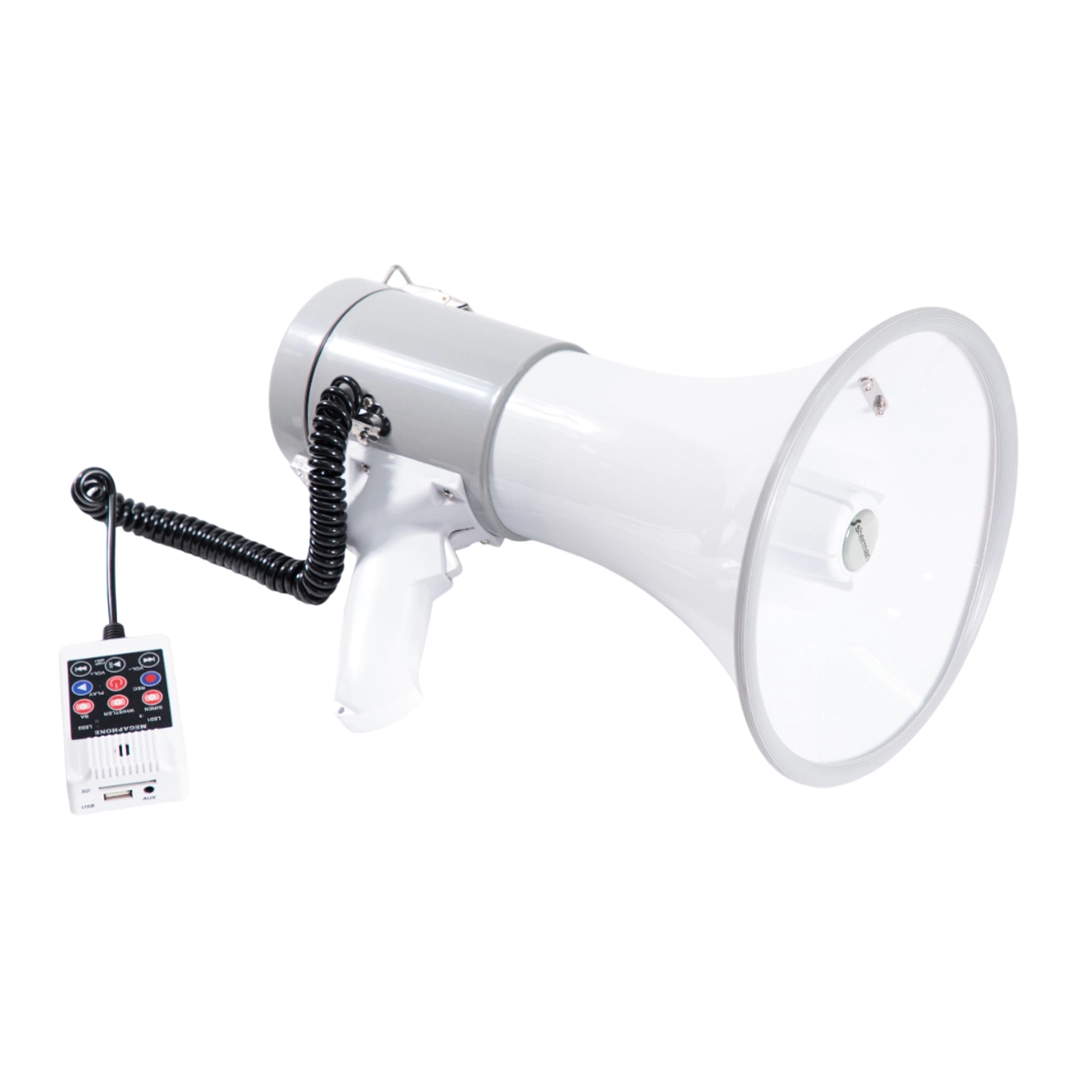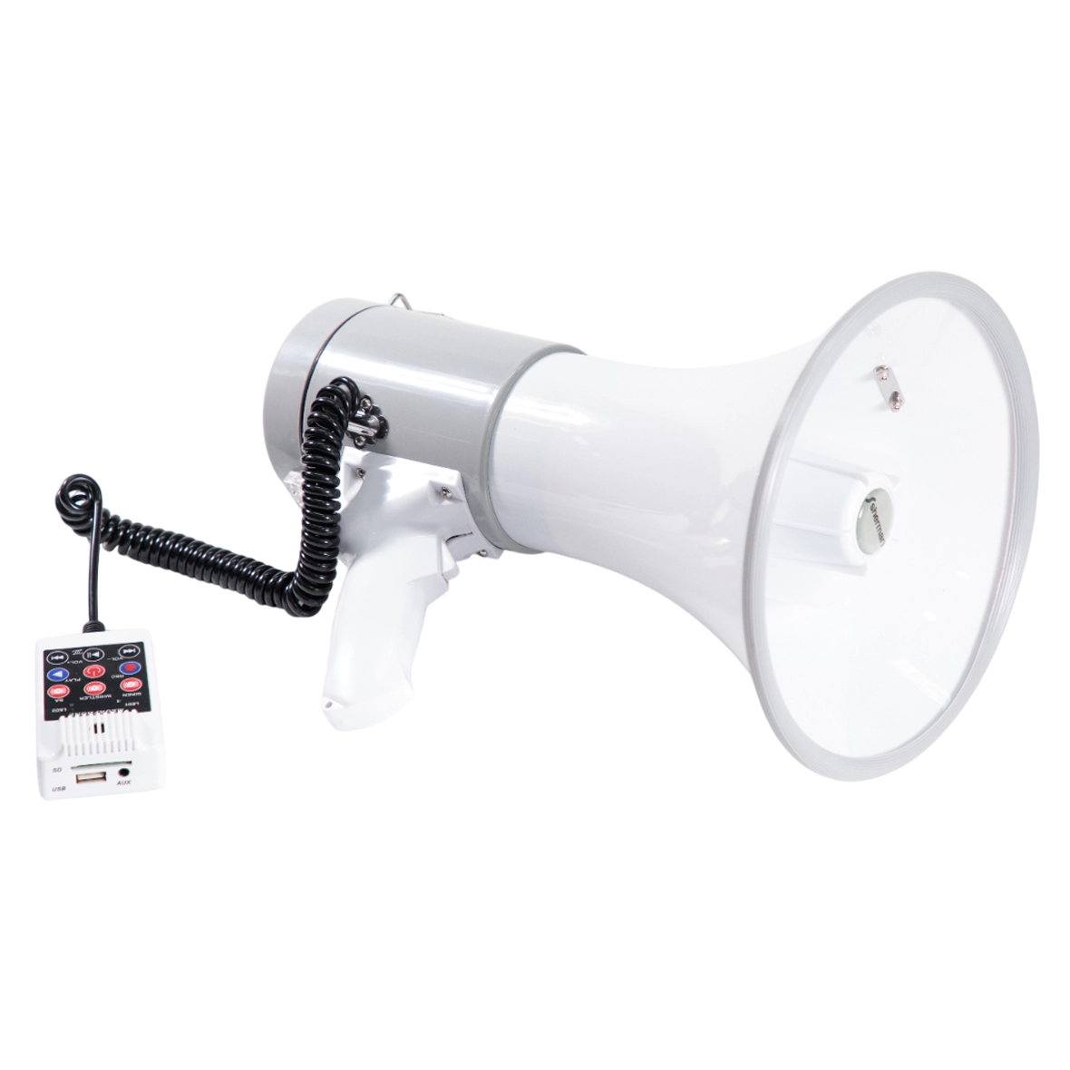 โทรโข่งมือถือ หรือ Megaphone 9 นิ้ว ขนาด 25 วัตต์ (สูงสุด 50 วัตต์) คุณภาพดี มีสายสะพายปรับระดับได้ พร้อมด้วยระบบเสียงเตือนแบบไซเรน และแตรรถ รองรับไฟล์เสียง MP3 จาก USB และ SD Card พร้อมด้วยแบตเตอรี่ลิเธียม ขนาด 7.4 V/1500mAh หรือใช้ถ่านไฟฉาย ขนาด D จำนวน 8 ก้อน สามารถใช้งานได้ต่อเนื่อง 4-5 ชั่วโมง เหมาะสําหรับงานภาคสนาม ,กิจกรรมลูกเสือ-เนตรนารี และหน่วยรักษาความปลอดภัย